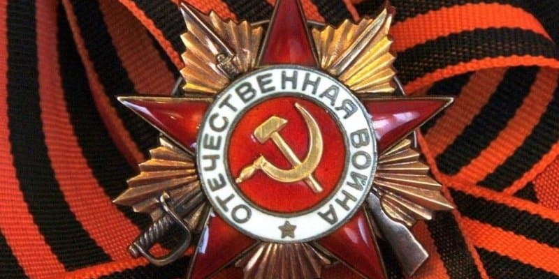 Также шёлковая муаровая лента с пятью продольными равными по ширине чередующимися полосками — три чёрного и две оранжевого цвета, с краями окаймлёнными узенькими оранжевыми полосками 1мм — прилагалась к различным советским наградам 1943—1945,1975,1985 гг: к одной из самых массовых медалей «За победу над Германией в Великой Отечественной войне 1941—1945» , ордену Славы всех степеней; использовалась на медали «За взятие Берлина», юбилейной медали «Тридцать лет Победы в Великой Отечественной войне 1941—1945» 1975, юбилейной медали «Сорок лет Победы в Великой Отечественной войне 1941—1945» 1985.