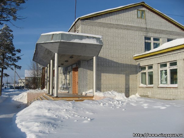 Заснеженный вид на поликлинику Вынгапуровского посёлка
